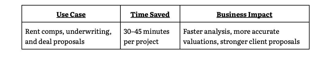 As an investment-focused brokerage, Trinity doesn’t handle leasing or property management - making quick access to reliable rent and comp data critical for underwriting and client proposals.